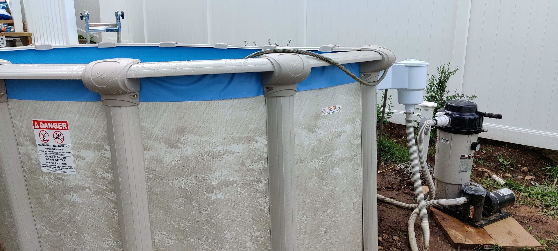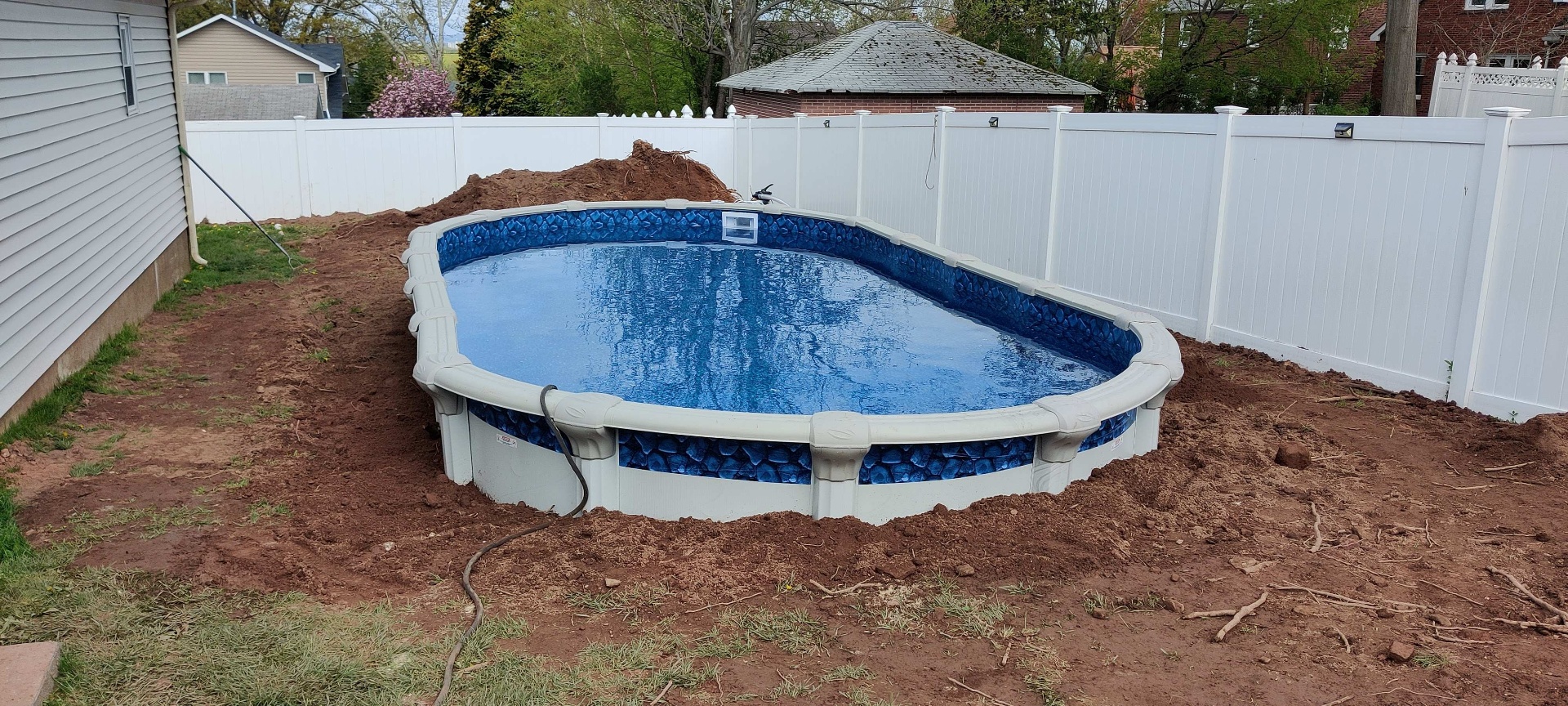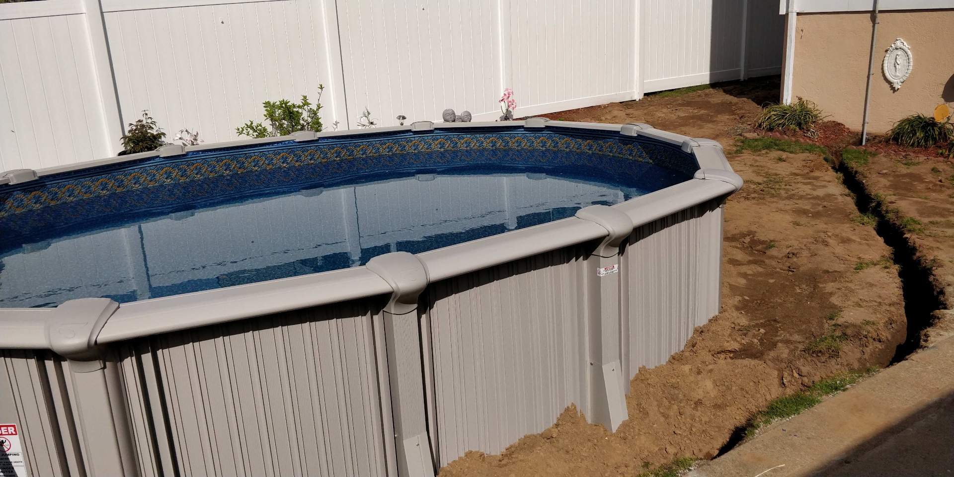 Turn-key above-ground pool installation: foundation prep, assembly, equipment, plumbing, and start-up.