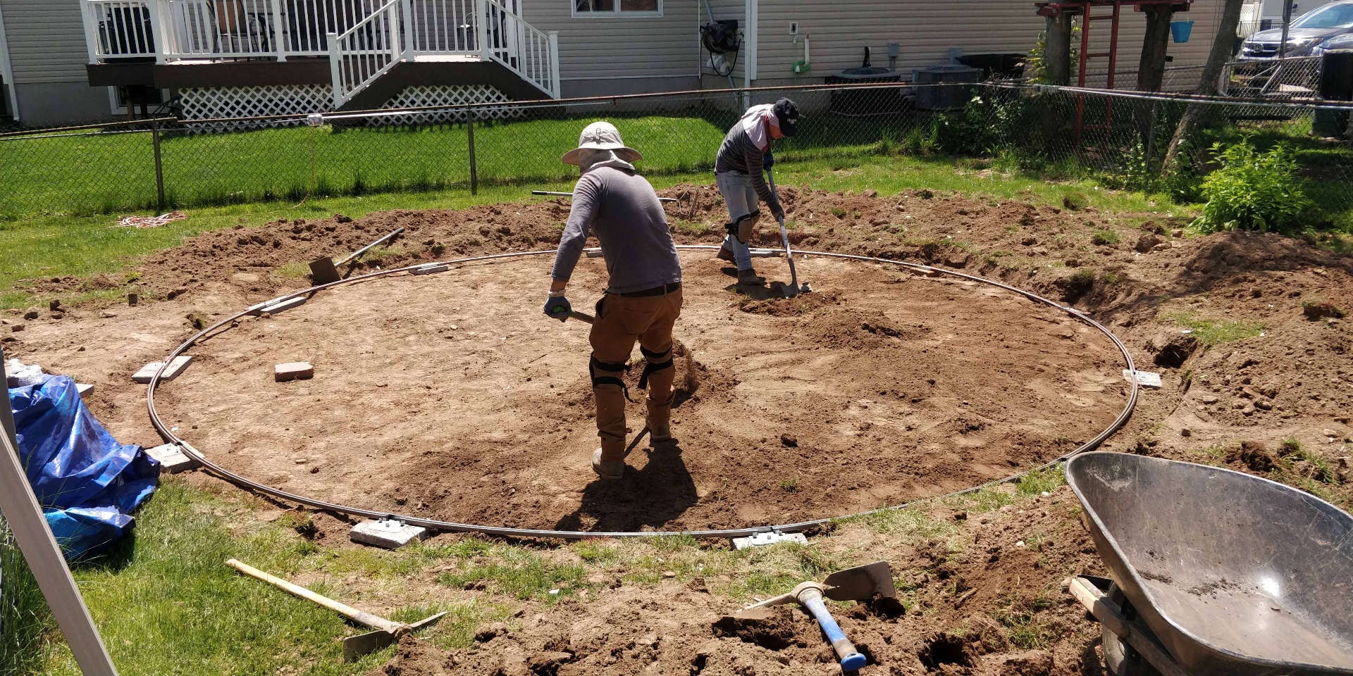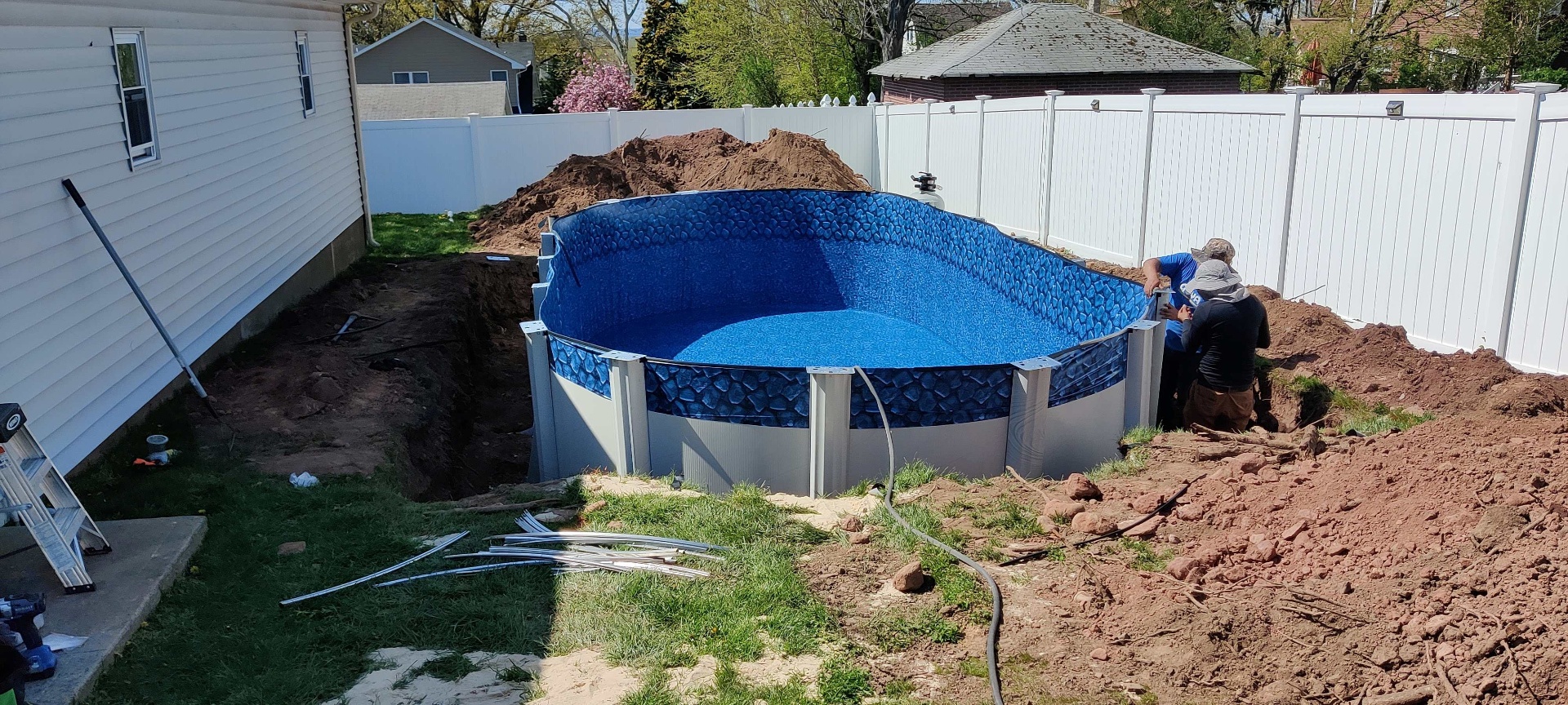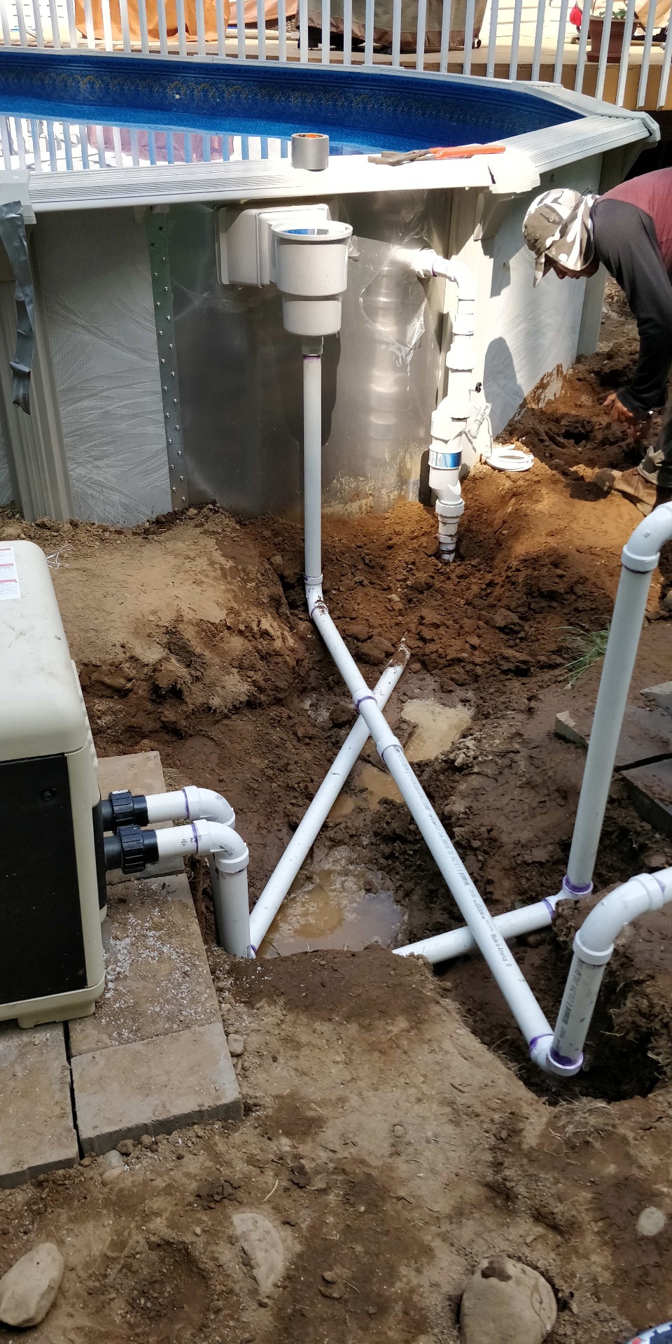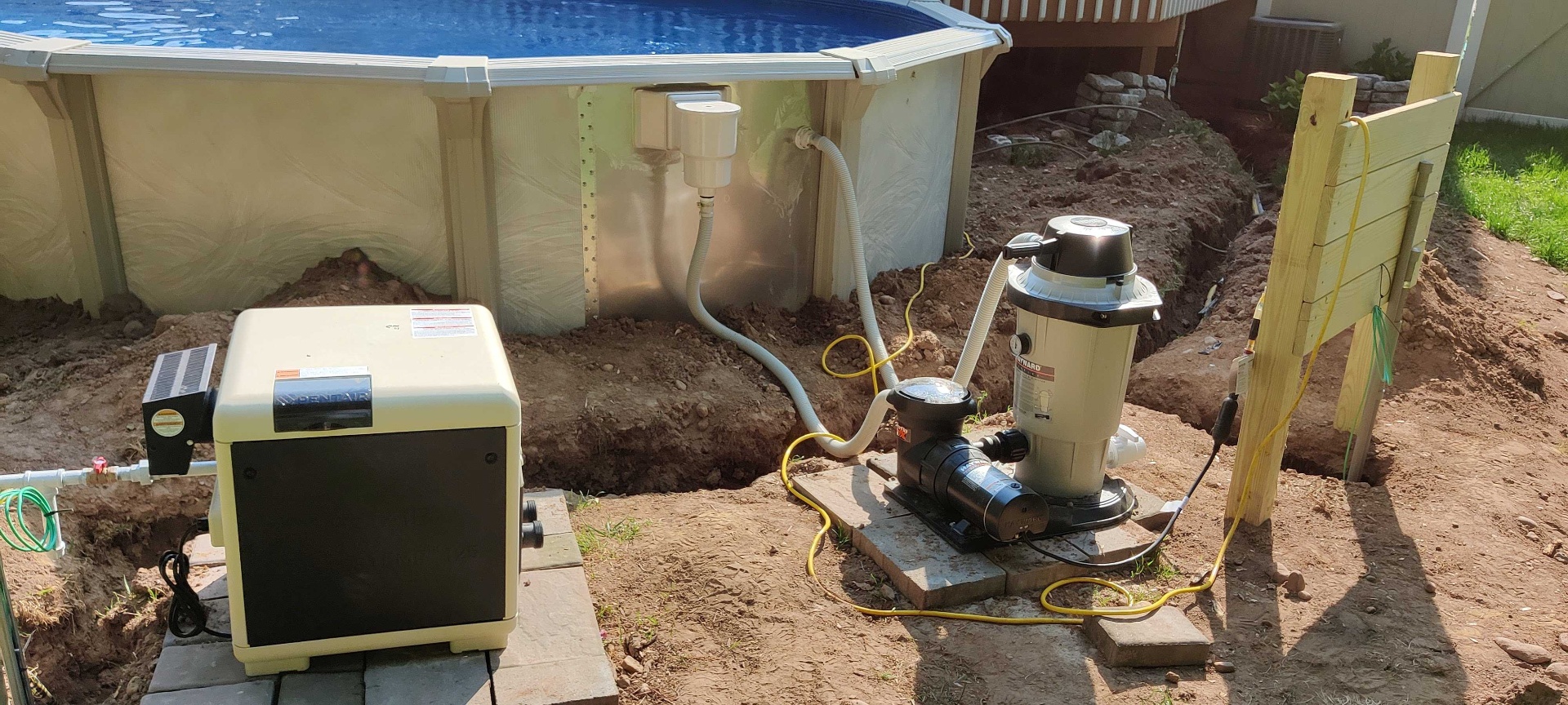 Turn-key above-ground pool installation: foundation prep, assembly, equipment, plumbing, and start-up.